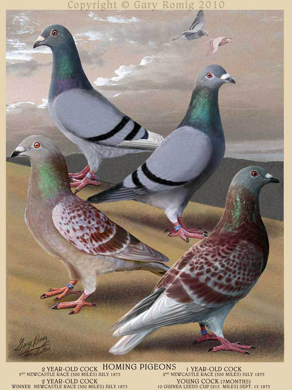HOMERS: Pigeons that are derived from Homing Pigeons or are related to Homers. They don't come in many colors or have feather ornaments.